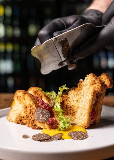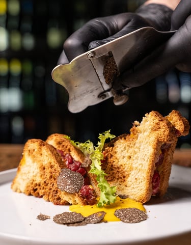 Il nostro menu valorizza le materie prime locali in piatti tradizionali reinterpretati in modo elegante e moderno. Grazie alla maestria dei nostri chef, i sapori sono equilibrati e presentati con eleganza.